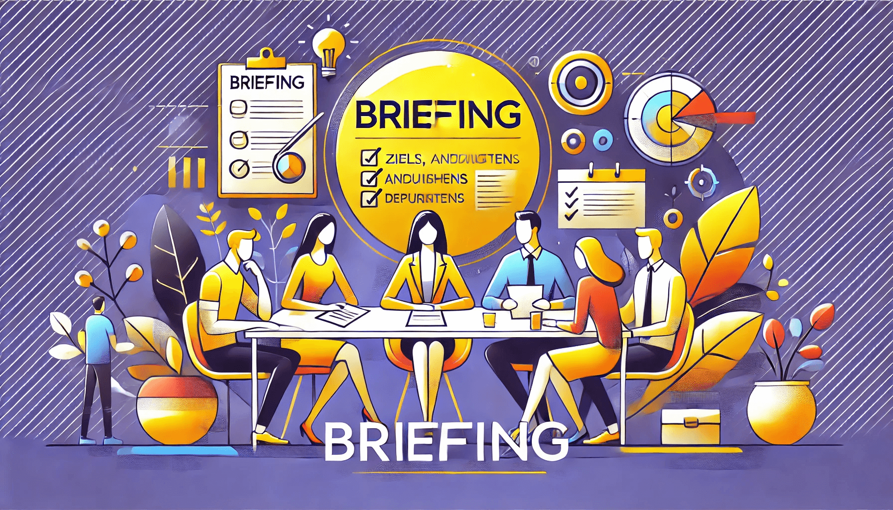 Ein Briefing ist eine strukturierte Information oder Anleitung, die dazu dient, die Ziele, Anforderungen und Details eines Projekts oder einer Aufgabe klar und präzise zu kommunizieren. Es gewährleistet, dass alle Beteiligten über dieselben Informationen verfügen und ein gemeinsames Verständnis der Erwartungen haben.